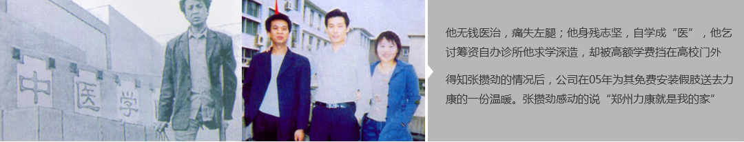 鄭州市力康假肢矯形器有限公司(簡稱力康),是一家專業從事假肢矯形器的設計、研發、制作及裝 配的專業機構。成立于1992年是河南省唯一一家福利企業。力康下設業務部、技術部、住院部、康復 部、售后服務部,并配有現代化的裝配車間和功能齊全的訓練大廳,為殘疾朋友康復訓練提供了可靠 保障??偨浝泶┐骷僦嗄?,有著豐富的臨床經驗和親身體會;多年來,力康已為全國幾十萬名殘疾 朋友安裝上舒適、美觀、耐用的假肢和矯形器具,使他們更大限度地恢復了正常的工作和生活。“產 品即人品”的質量理念、先進的技術、實惠的價格、完善的售后服務是力康取勝的法寶……